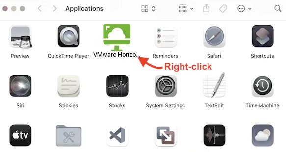 - Right-click on “VMWare Horizon Client”