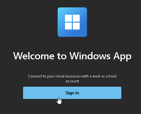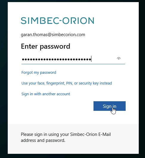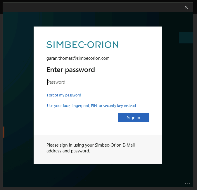 Upon opening the Windows App you will be automatically signed in if you are using a Simbec Orion provided laptop, if you are using your own equipment.