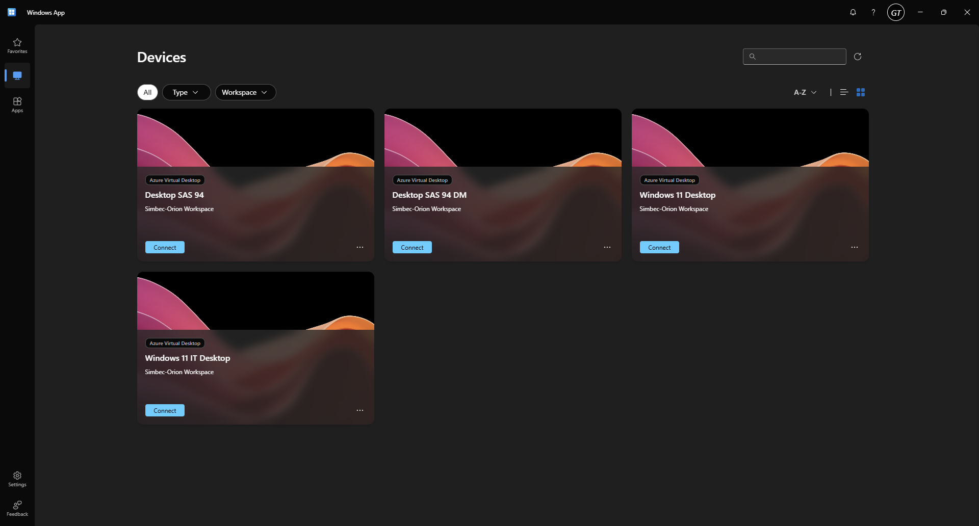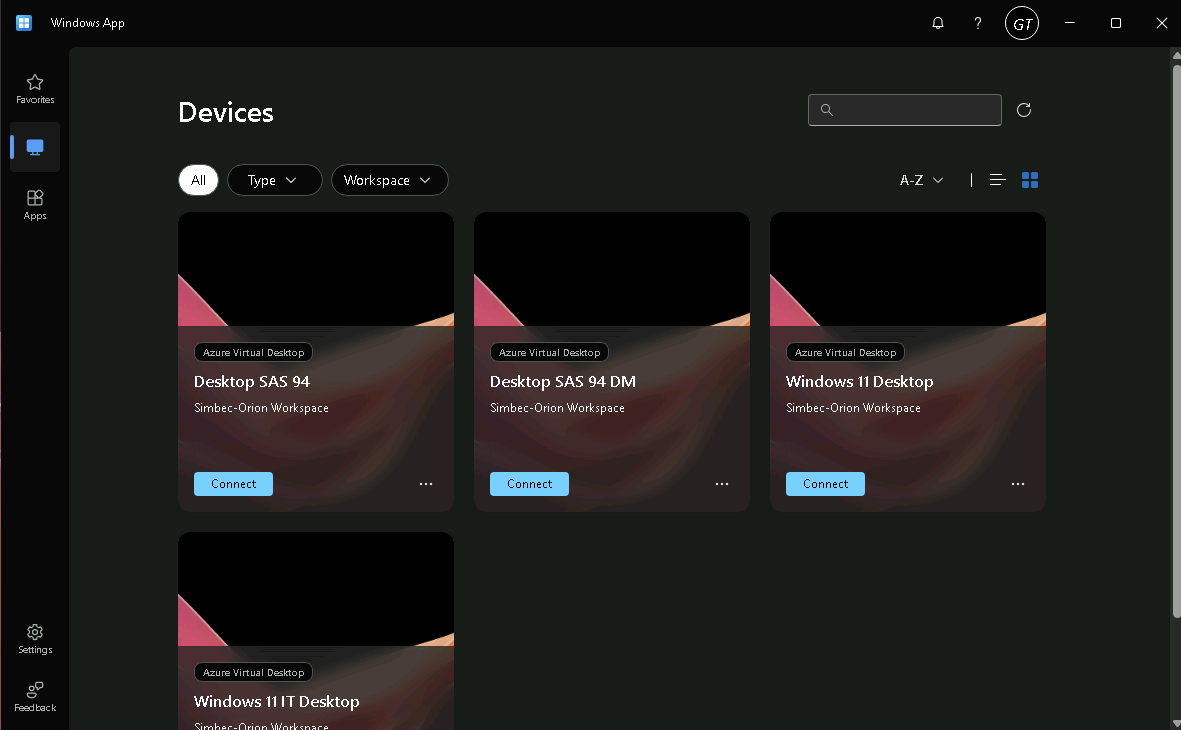 - Once approved you will be greeted with the Windows App and the resources available to you for use.