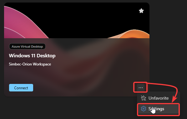 There are some basic settings allowing you to configure how Azure Virtual Desktop displays your desktop on your local machine with a few options to chose from. To access these settings you can click on the … in the bottom right corner of your desktop instance before connecting and open the “Settings” menu.