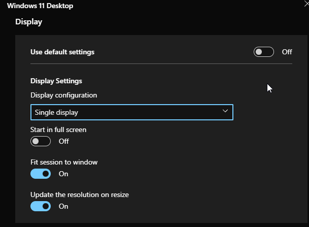 - Single Display - This will use your primary display for Azure Virtual Desktop in fullscreen