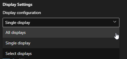 You can also chose additional settings from “Single display” or “Select displays”