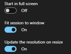 - Fit session to window - Fits the Azure Virtual Desktop to the window