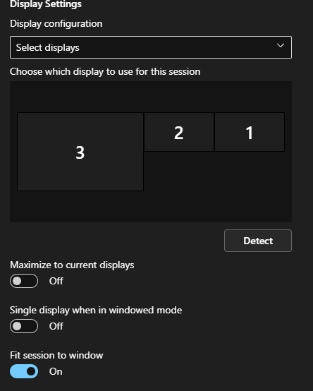 - Select Displays - This will allow you to select what displays are used for Azure Virtual Desktop