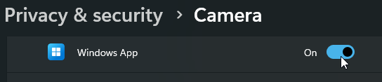 - Turn access to the microphone / camera on or off for the Windows App in the list.