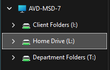 If you were a previous user of VMWare Horizon, your files and folders can be found under the L:\ drive on the AVD image as shown below in the file explorer: