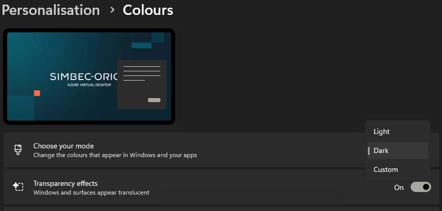 You can customise your AVD desktop experience and tailor it to your liking such as dark mode or the position and icons in the taskbar.