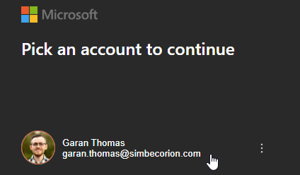- Open the “Windows App” - Once opened you may be signed in automatically but if you are not, please select your @simbecorion.com account and enter your password if required.