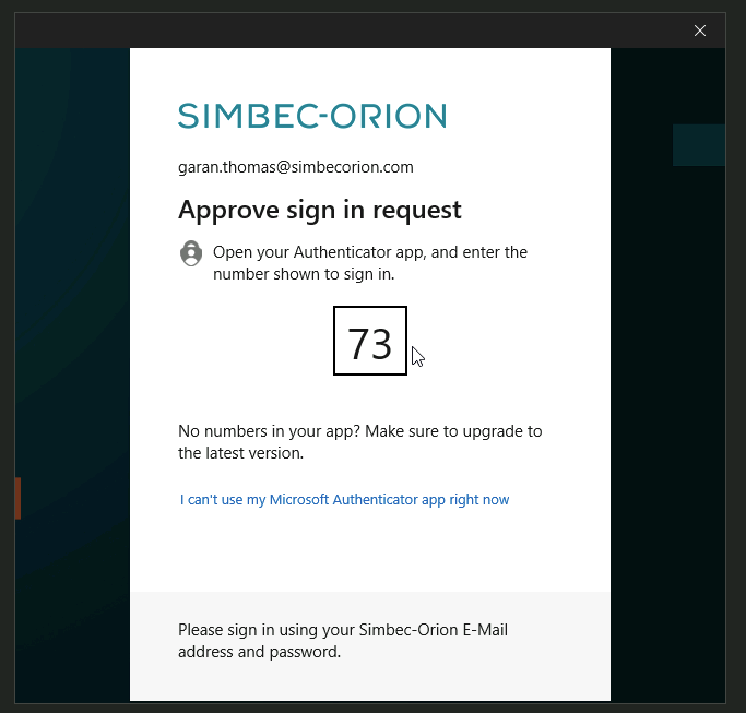 With Azure Virtual Desktop we utilise Microsoft Authenticator, if you do not already have this set up the system will walk you through the set-up process during the first sign in. You will need this to authenticate every time you log into AVD from a non Simbec Orion device.